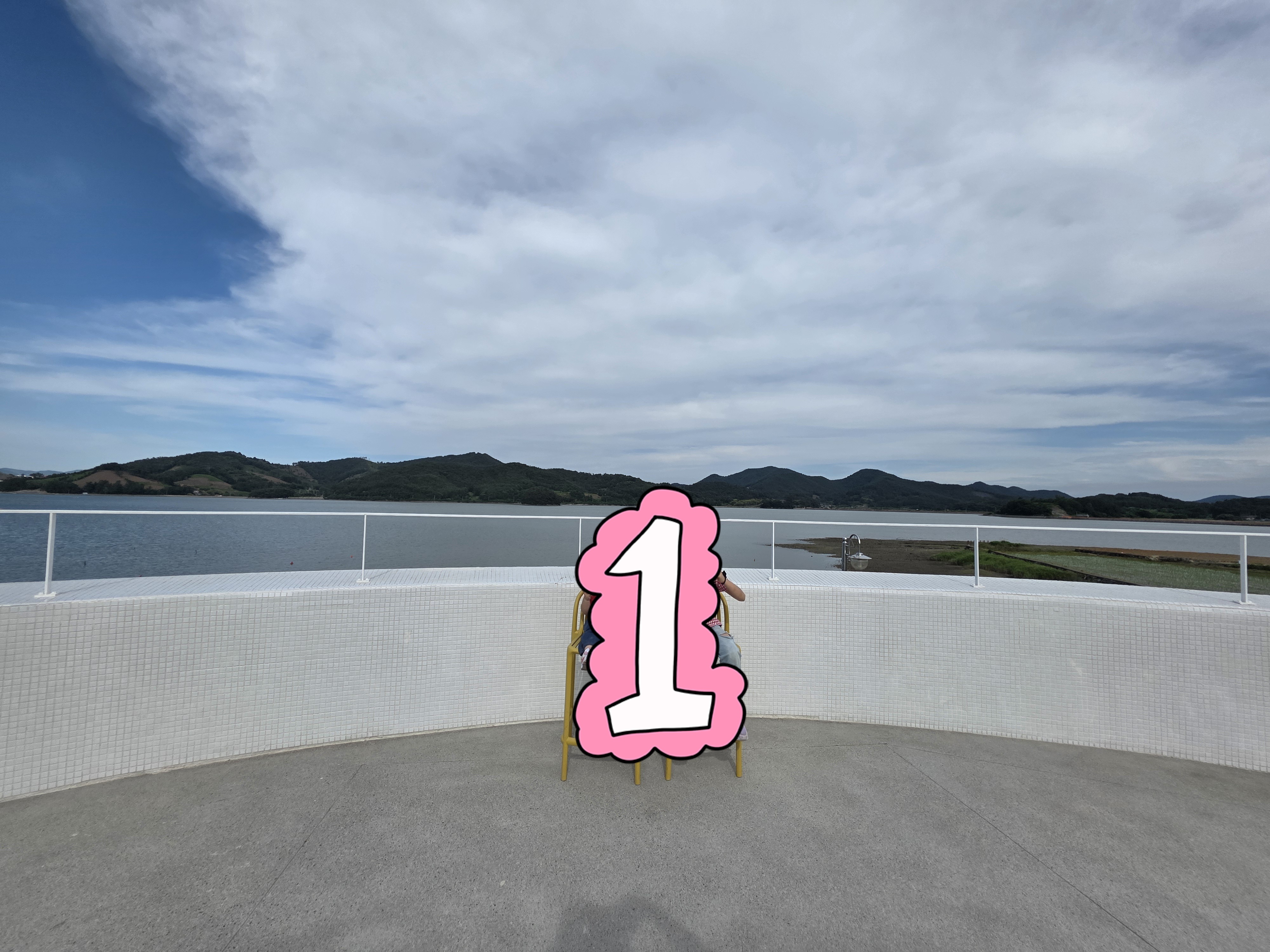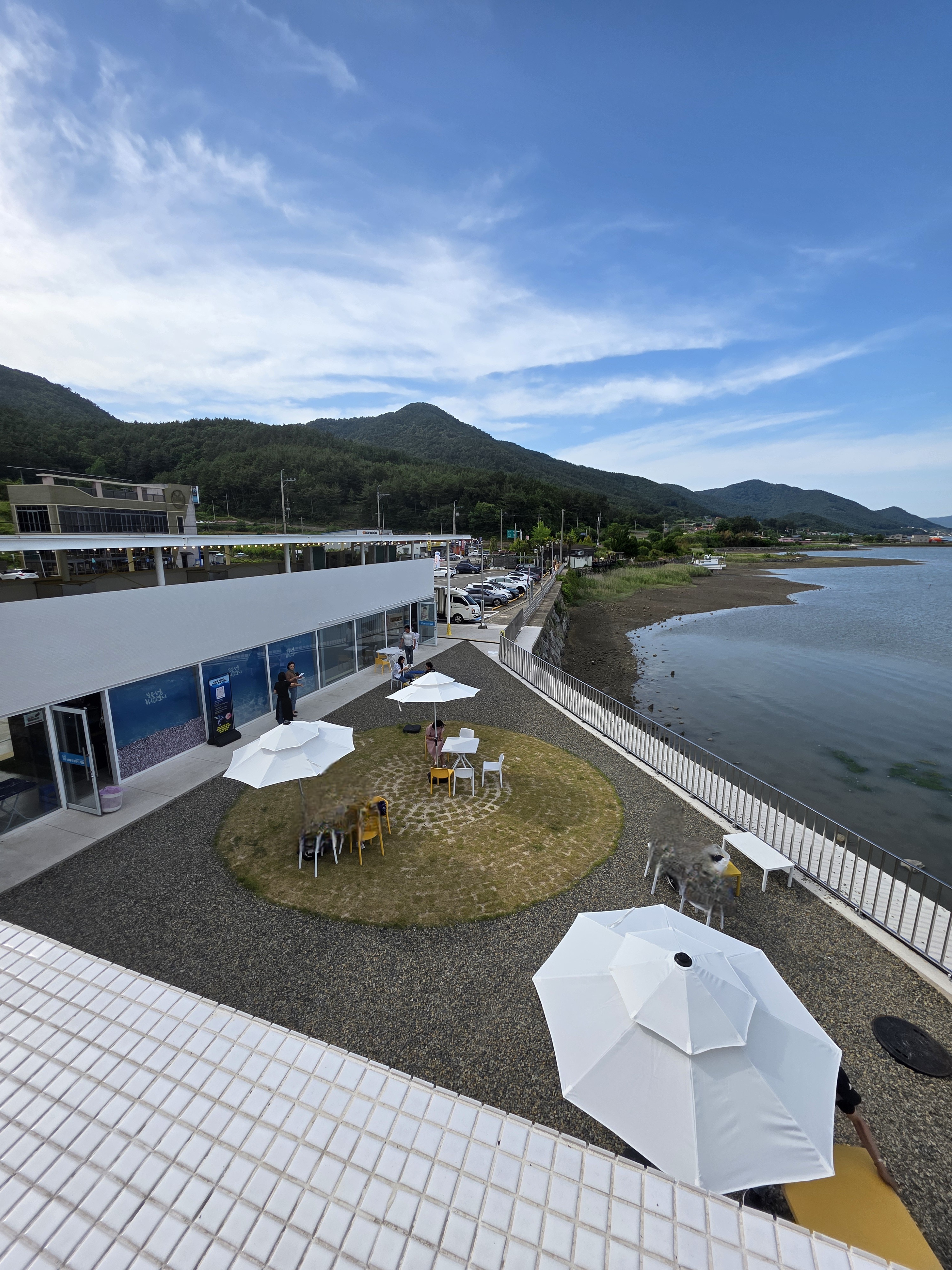 매장 뒤편 벤치에서 바다 풍경을 보며 여유롭게 식사 가능(2층에 탁트인 시야에 포토존까지)