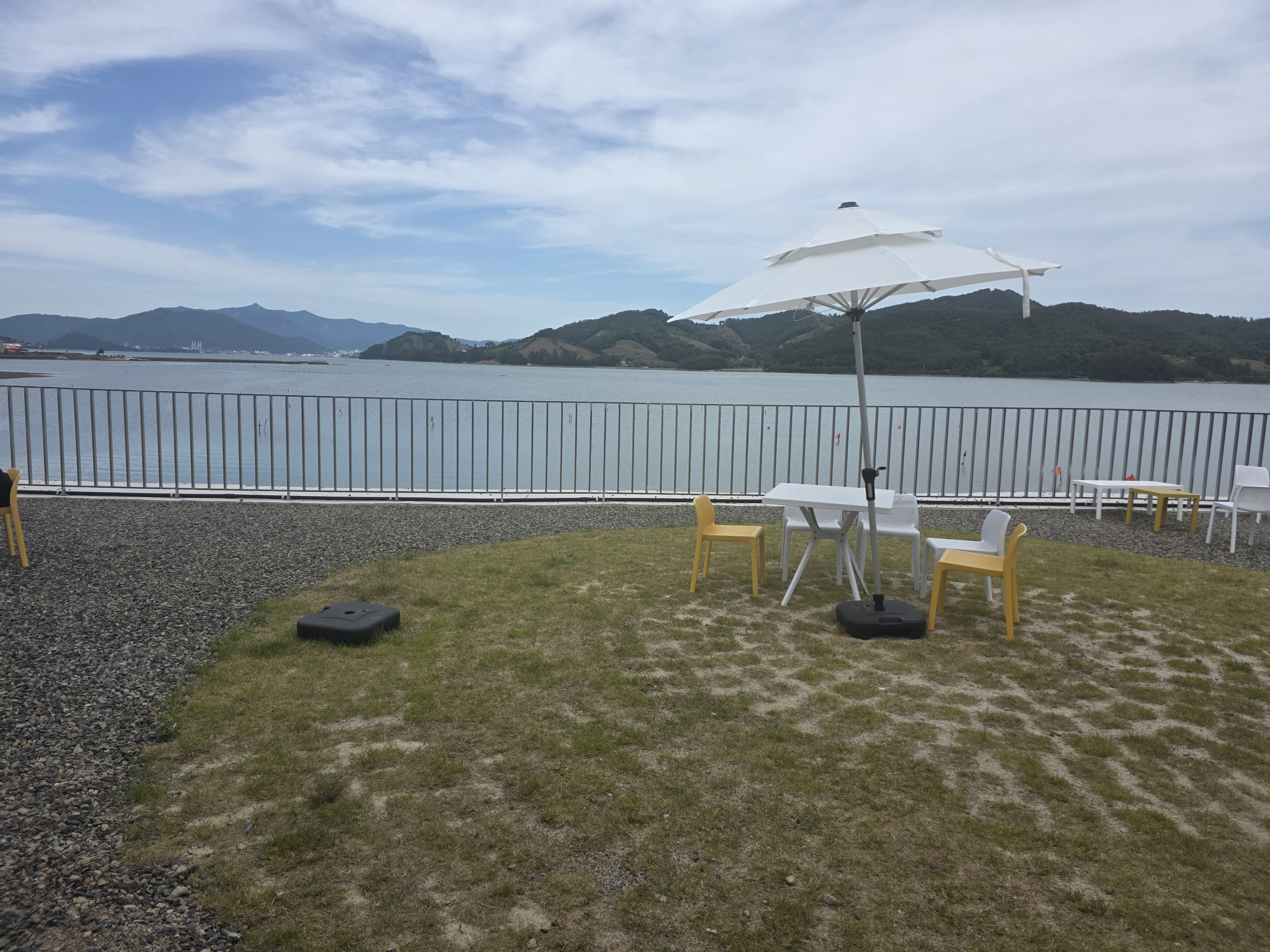 - 야외 테라스에서 남해 바다 풍경을 보며 먹는 재미는 덤! 🌊
